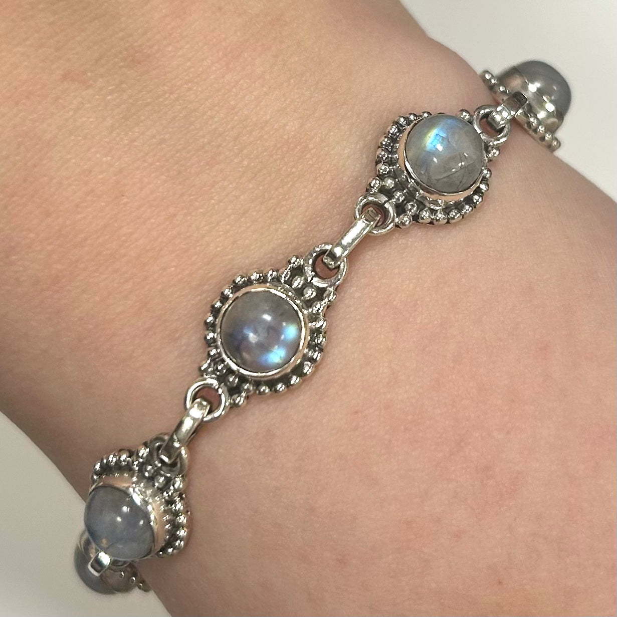 Hand crafted with solid 925 sterling silver and genuine Moonstone.